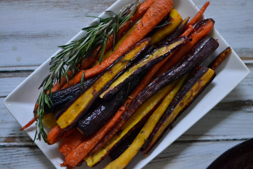 I used my cast iron skillet, threw some onions and garlic with the chicken, and roasted some carrots, butternut squash and Brussels on a pan at the same time.