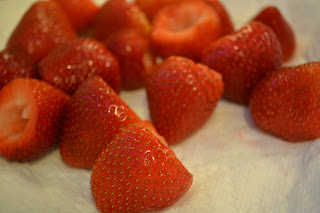 2. Wash and gut out the strawberry stems. Slice the top of the strawberry so there is a flat surface.
