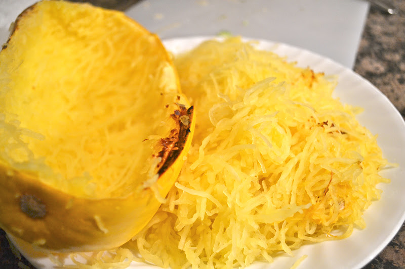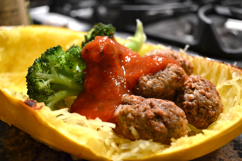 There are a variety of squaghetti recipes from basic spaghetti to lasagna-like recipes and other baked squash recipes. I went for the quick, but delicious, typical spaghetti by adding tomato sauce, broccoli and my favorite Meatless Meatballs from Trader Joe’s. Although I’m not a vegetarian, I would eat these any day over regular meatballs. They are delicious!